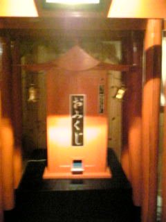 名古屋の大須には巫女さんが給仕をやっている居酒屋があることを。 ということで、昨日は大学時代の友人たちとともに噂の巫女さんがいる居酒屋 「月天」 にいってきました。 ←入り口はこんな感じ 大通りに面した入り口から進むこと、地下へ。 白い小袖に緋袴と、まさしく巫女の正装束をした女性従業員の方々がお見えでした。 友人のY君はとってもうれしそうです。 ちなみに男性従業員は作務衣を着ていました。 席に案内されると、まずは巫女さんから案内が 「当店ではお客様は神様として扱っております」 なんだか、どこかで聞いたようなセリフです。 「食前酒としてお神酒を用意しあてあるので、そちらのほうをお飲みになってから進めてください」 ←食前酒 何の果実酒かまではわからなかったですが、甘くておいしかったです。 説明も終わったところで、飲み会のスタート。 メニューは思っていた以上にドリンクの種類が多かったです。 オリジナルカクテルもかなりの数がありました。 ちなみに出てくるカクテル系はどれも度数が低め。友人から「酒というよりジュースだよな」との発言が出てくる始末。 酒飲みには少々物足りないようです。 私は酒は弱いほうなので、これでも十分に問題はなかったのですが。 そして食事。 これも少々変わっていましたね。 まさか馬舌なんてあるとは思ってもいなかったです。 ほかにも面白いメニューもありました。 「たこ焼きで運試し」。 8つあるたこ焼きのうち1つが、タバスコの20倍の辛さをもつデスソースが入ってるとのこと。 人数はちょうど4人だったので、みんなで挑戦することに。 1つ目を食べたときは全員無事。そして2つ目にチャレンジしたとき、見事に引き当てました。 私が! すごいです。 辛い、なんて言葉がでてこないです。まず最初に感じたのは「熱さ」。そしてそのあとにやってきた激痛!あまりの痛さになにも話すことができません。 残していた酒、当り(外れ?)を引いた時のために用意された水、友人の飲んでいた赤ワイン。これだけ飲んでも痛さが引かないのです。 ようやくしゃべれるようになったのは10分ほど過ぎてからでした。 ちなみに私の唇は真っ赤に晴れ上がっていたそうです。 大爆笑していた友人たちはもう一度やりたがっていたのですが、さすがに泣きが入りました。 ダメです。1日に2回も耐える自信がないです。 その後はわりとまったりと、飲み会を進めました。 おみくじ引いたり、 デザート食べたり、 ←鳥居はクッキーでした。 なかなか楽しめた居酒屋でした。 帰るときには巫女さんの一人が神楽鈴をもってお見送りまでしてくれました。 ちなみにお値段は全体的に普通の飲み屋の2~3割増しといったとこでしょうか。 前述したとおり、カクテルの度数とかも低めなので、純粋に飲みに行くことには向いてない店でしょうね。 話のタネに、ということで機会があったら一度いってみてわ? p.s.そういえば、巫女さんが注文取りに来てくれたんだけど、あまり気にしてなかったなぁ PR Lv19まで上げておいてなんですが。 敵を操って別の敵にぶつける。という、ミサイル方式なのはわかるのですが・・・・・・。 まぁ、ケモリンのLvが低いためにできることが少ないというのも、難しさに拍車を掛けているのでしょうが・・・・・・。 曲がりなりにもブログをやっている以上、書くネタを探すというのはいつも大変です。 ケモリンがLv19になりました。 といったくらいでしょうか。 ふとふりかえってみればこの1年くらい、ソロでもLv上げができるれるジョブばかりやっていますね。そして、そのジョブがAFを着れるLv(具体的にはLv60)になったら次のジョブのLv上げを。 経験値は稼ぎたいけど、長時間拘束されたくない。という、わがままな思いから始めたソロでのLv上げですが、たまにはパーティも組んでみたいという思いがあります。正確にはパーティで得られる大量の経験値が欲しいのですが。 ということで、パーティー組みたいなあ、と思いながら、今日も桟橋にこもることになりそうです。 ただいま、過去の回想に入っています(笑 このゲームについてはもはや説明する必要もないのでは。 このゲームで初めて、サーバーメンテナンスというモノを知りました。 ・・・・・・あれ? ま、まあ、家庭用のオンラインゲームということで、ずいぶんと敷居が低くなり、それについての弊害もいろいろとありました。システム上の関係でチートも防ぐことができなかったとか、システム面でのマイナスも多かったと思います。 それでも、オンラインゲームというものを世に広く知らしめたゲームとして、やはり、オンラインゲームを語る上でもはずすことはできないでしょう。 しばらくは回想が続きます。 ・・・・・・ホントだよ。 皆さんはオンラインゲームというのをどれだけ遊んだことがありますか? 私が初めてプレイしたオンラインゲームは2000年9月29日にコーエーが発売した「アプサラス」というゲームです。 家にいながら